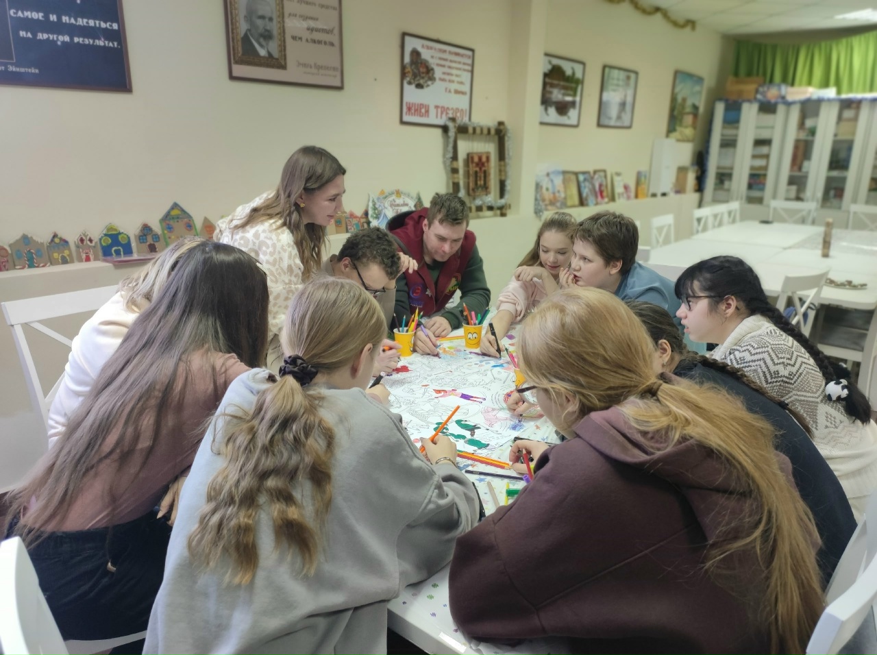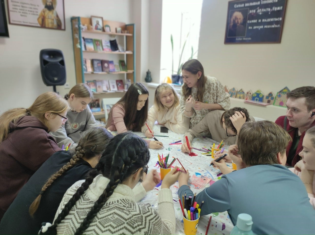 25 января в арт-пространстве "Цоколь" состоялось первое в 2026 году занятие проекта "Счастливый День". Это проект, организованный Союзом православной молодежи Мордовии для помощи в развитии особенных детей через творческие занятия. На встречу 26 января волонтёры принесли большой плакат с контурами спортсменов-хоккеистов и вместе с детьми раскрасили их разноцветными красками. "Мы не просто раскрашивали - мы говорили. Обо всём на свете! Оказалось, что общие интересы и шутки стирают любые барьеры и границы", - рассказали волонтёры.
