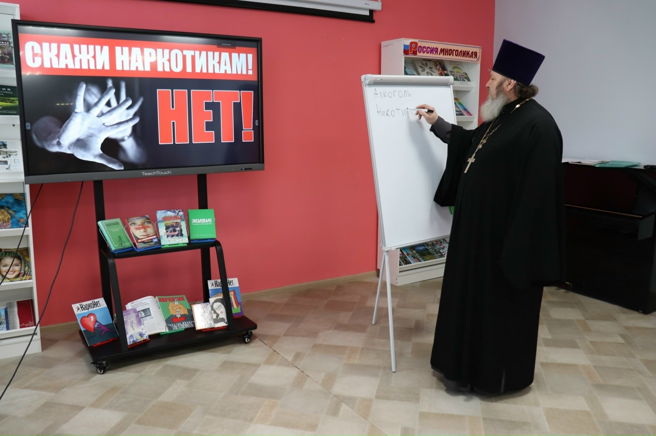 2-го марта с учащимися Саранской школы №39, в рамках "разговоров о важном", пообщался протоиерей Виктор Хохлов. Беседа прошла в актовом зале кафедрального собрав святого праведного воина Феодора Ушакова. Священник беседе с подростками рассказал, что истинная важность человека кроется не во внешнем блеске, а во внутренних его качествах . Равнодушие, эгоизм, злость – это то, что разрушает человека изнутри. А доброта, сострадание, умение прощать – то, что делает его по-настоящему сильным и нужным близким и Родине. В завершение урока ученики посмотрели художественный фильм "Адмирал Ушаков. Восхождение". Международному дню борьбы с наркоманией и незаконным оборотом наркотиков была посвящена встреча, состоявшаяся 4 марта в Центральной городской библиотеке Саранска. С учениками школы №24 беседовал иерей Владимир Самарин. Священник объяснил учащимся, каковы последствия употребления наркотических веществ, и какой вред наркотики наносят душевному и телесному здоровью человека.